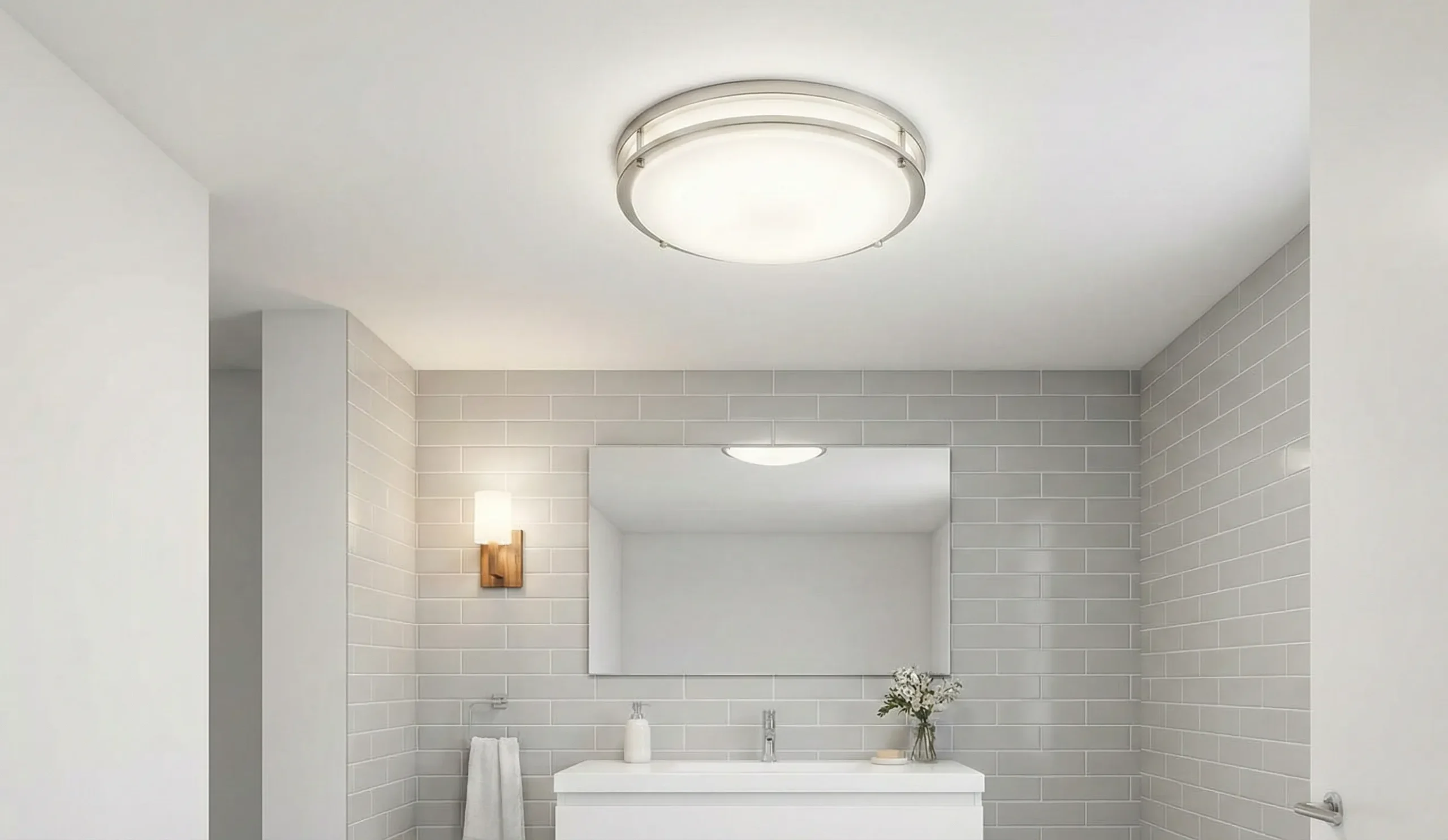 If we are being honest, flush-mount lights are the unsung heroes of bathroom ceiling lighting ideas.