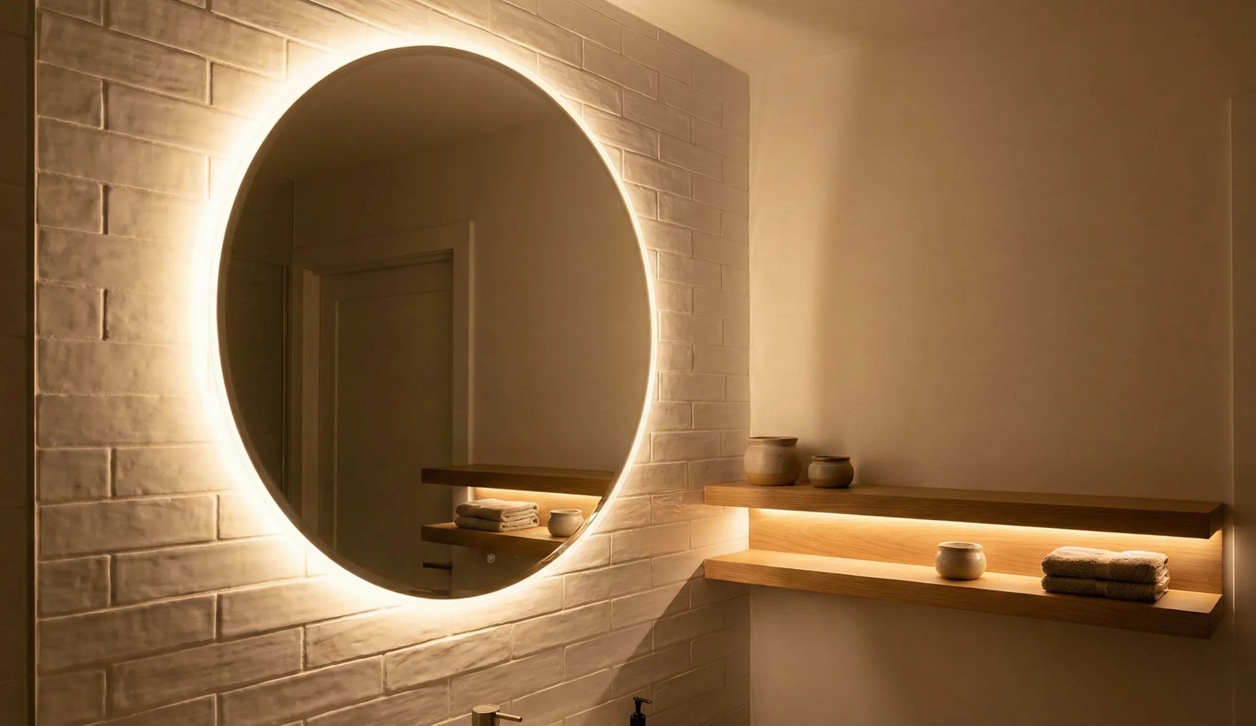 Neutral white (around 4000K) is usually the safest choice for small bathrooms because it feels clean and bright without being harsh. Warm white (3000K) works well for ambient or mood lighting, while very cool white should be avoided as it can feel clinical and exaggerate shadows, especially around mirrors.