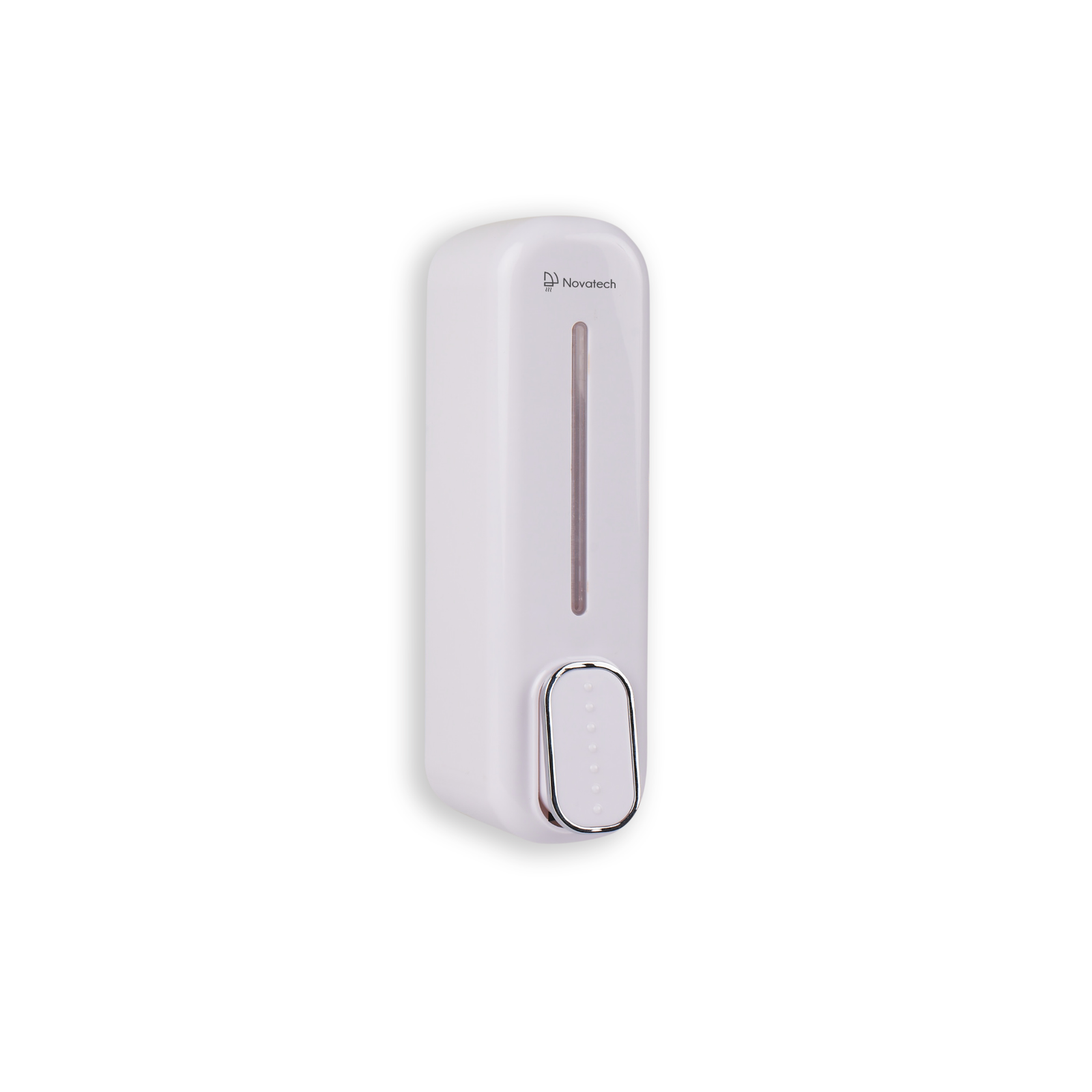 A manual liquid soap dispenser comes in white colour and is made of polycarbonate ABS casing. Polycarbonate is a tough transparent plastic resin that is made to withstand extremely high and low temperatures.
