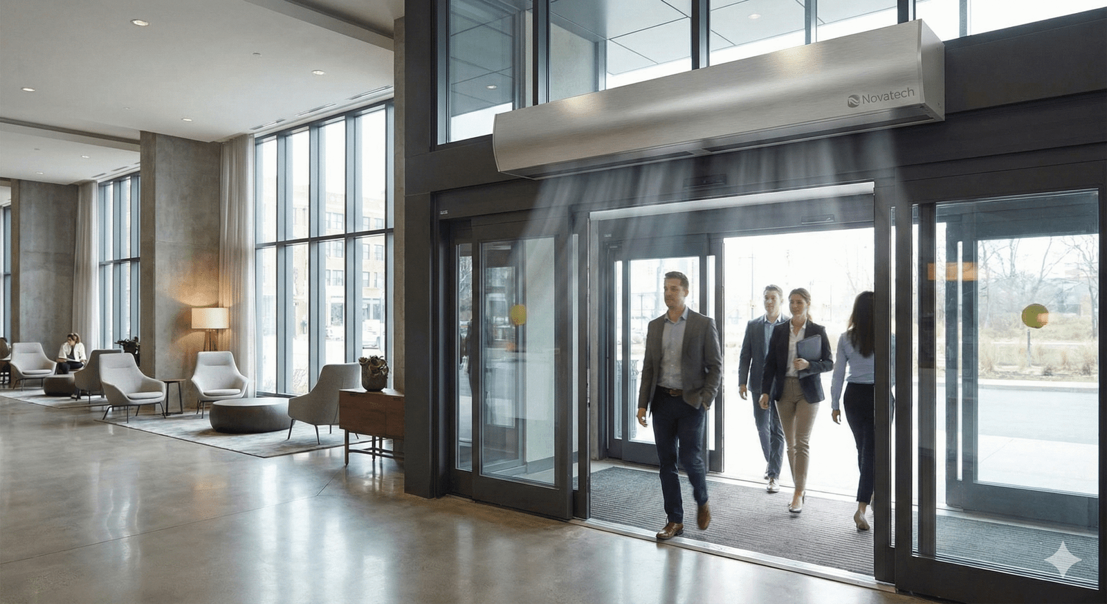 Here is what you should know: A good air curtain system actually balances the performance and efficiency. This is where Novatech stands out, as our products are built for real-world usage! And if you look at what an air curtain is used for in commercial spaces today, now you know there are multiple reasons for it!